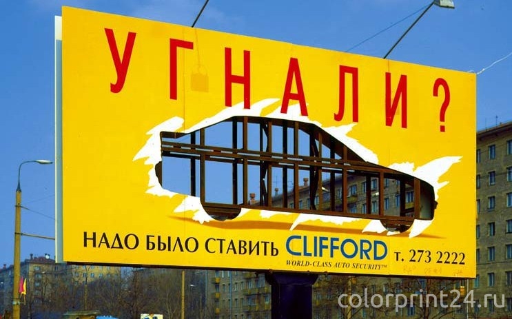 - Билборды. Виниловая ткань по своей фактуре не предназначена для нанесения изображений с высоким разрешением. Однако при печати, которые монтируются на крупных, высоко расположенных щитах, это не критично.